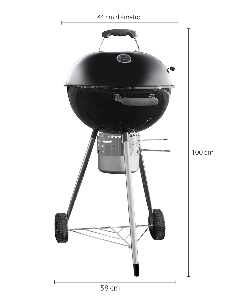 Fabricado con cuerpo esmaltado, garantiza resistencia y durabilidad sin mayor desgaste con el paso del tiempo. Gracias a sus ruedas incorporadas, podrás moverlo fácilmente y disfrutar de un asado donde tú quieras.